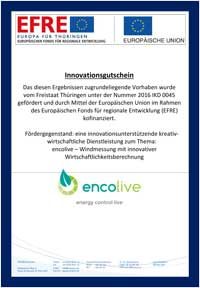Fördergegenstand: eine innovationsunterstützende kreativ-wirtschaftliche Dienstleistung zum Thema: encolive – Windmessung mit innovativer Wirtschaftlichkeitsberechnung
